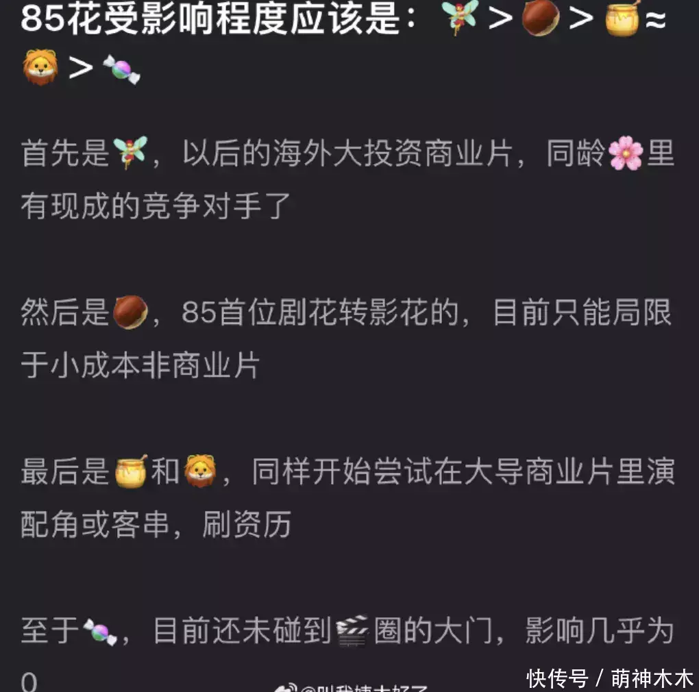 据悉,在辛芷蕾拿到影后没过多久,就有博主进行了一波分析,称85花的格局要变了,洗牌过后现在变成了刘亦菲、辛芷蕾、杨幂与赵丽颖,给这几位进行所谓的洗牌与排名,颇有点拉踩的意思。