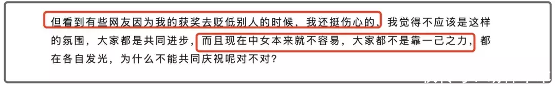 不过用辛芷蕾的话来说,女演员之间的氛围很好,大概率也不会因为这些所谓的排名而受到影响,并且辛芷蕾还表示,看到网上有人因为自己获奖而去贬低别人,其实是很伤心的,她觉得不应该是这种氛围,大家都很优秀,尤其是现在中年女星本来就不容易,都在各自发光,为什么就不能共同庆祝呢?